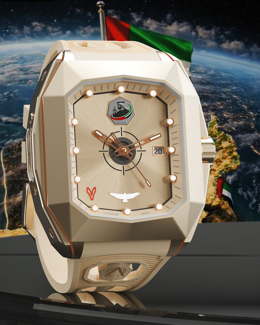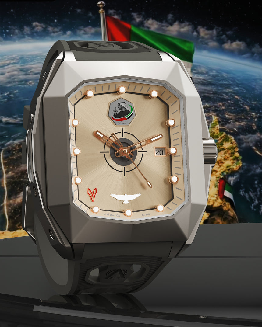 More than a watch, Majd Al-Emarat is a statement of pride — a reminder that the strength of the Emirates lies in unity, resilience, and vision. A tribute to a nation. A symbol of unity.