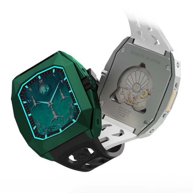 The Ghawwasu Al-Lu’lu’ collection features a unique design and engineered case, crafted entirely by the Zaman Alandi team. All started with the vision to create a watch that is different from the others —a case with 22 individual components—became reality through cutting-edge technology and passion. With over 2000 hours of engineering, our team turned concept into creation, ensuring every detail meets the highest standards.