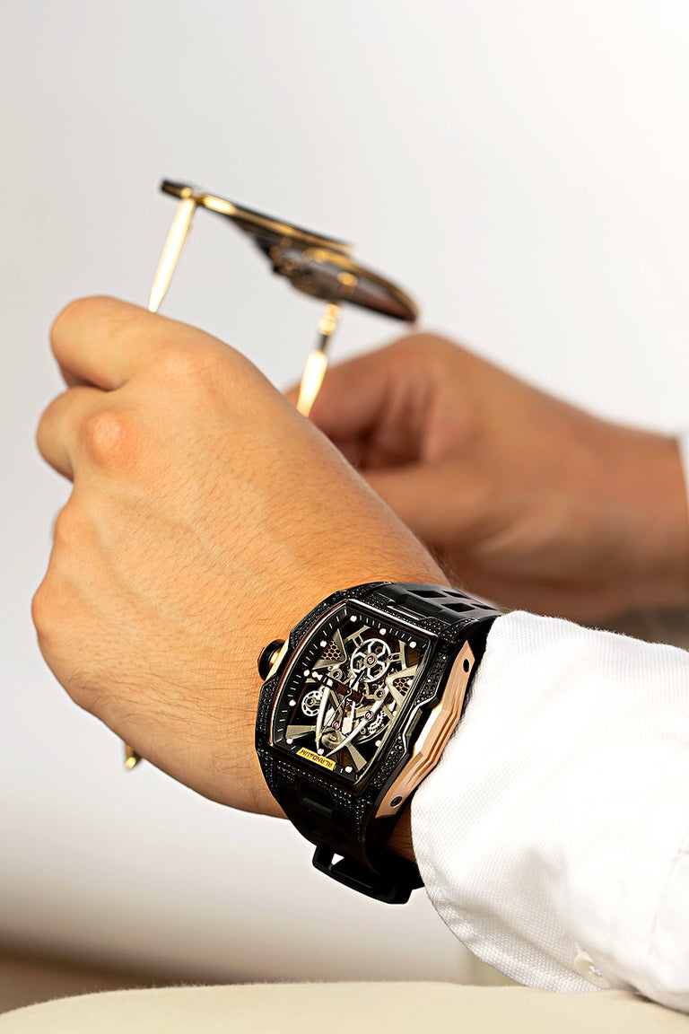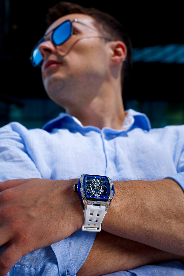 The Hyperion Watch is a statement of power and elegance, defined by its striking tonneau-shaped case. Crafted from 316L stainless steel, it offers exceptional durability while maintaining a sleek finish that enhances its distinctive silhouette. Every curve and contour is designed to catch the light, making the Hyperion not just a timepiece, but a work of art that demands attention.