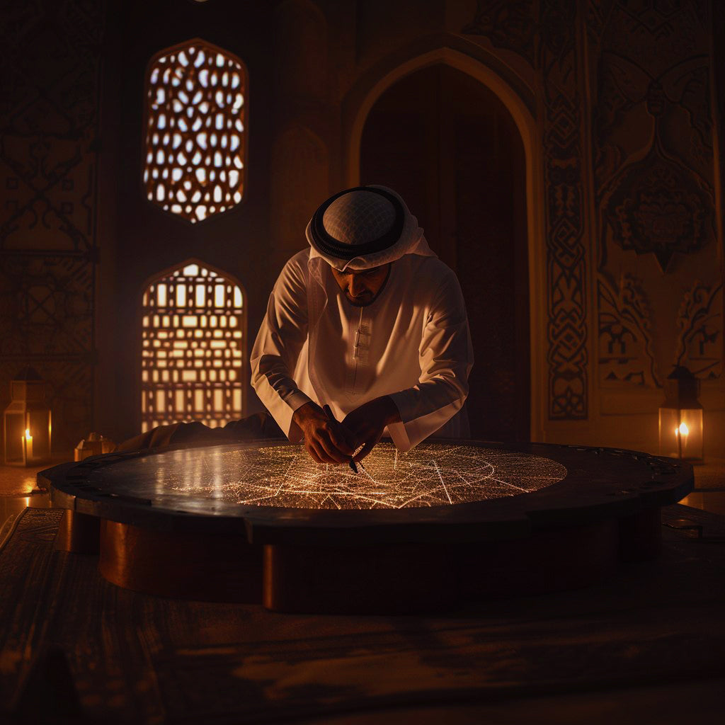 Yet beyond Greece and its philosophers, geometry lived and breathed in the heart of the ancient world. Across the deserts and coasts of Arabia, artisans carved and built using the same timeless principles: symmetry, balance, proportion. The domes, arches, and intricate mashrabiya patterns of the region all speak the same sacred language of mathematical beauty.