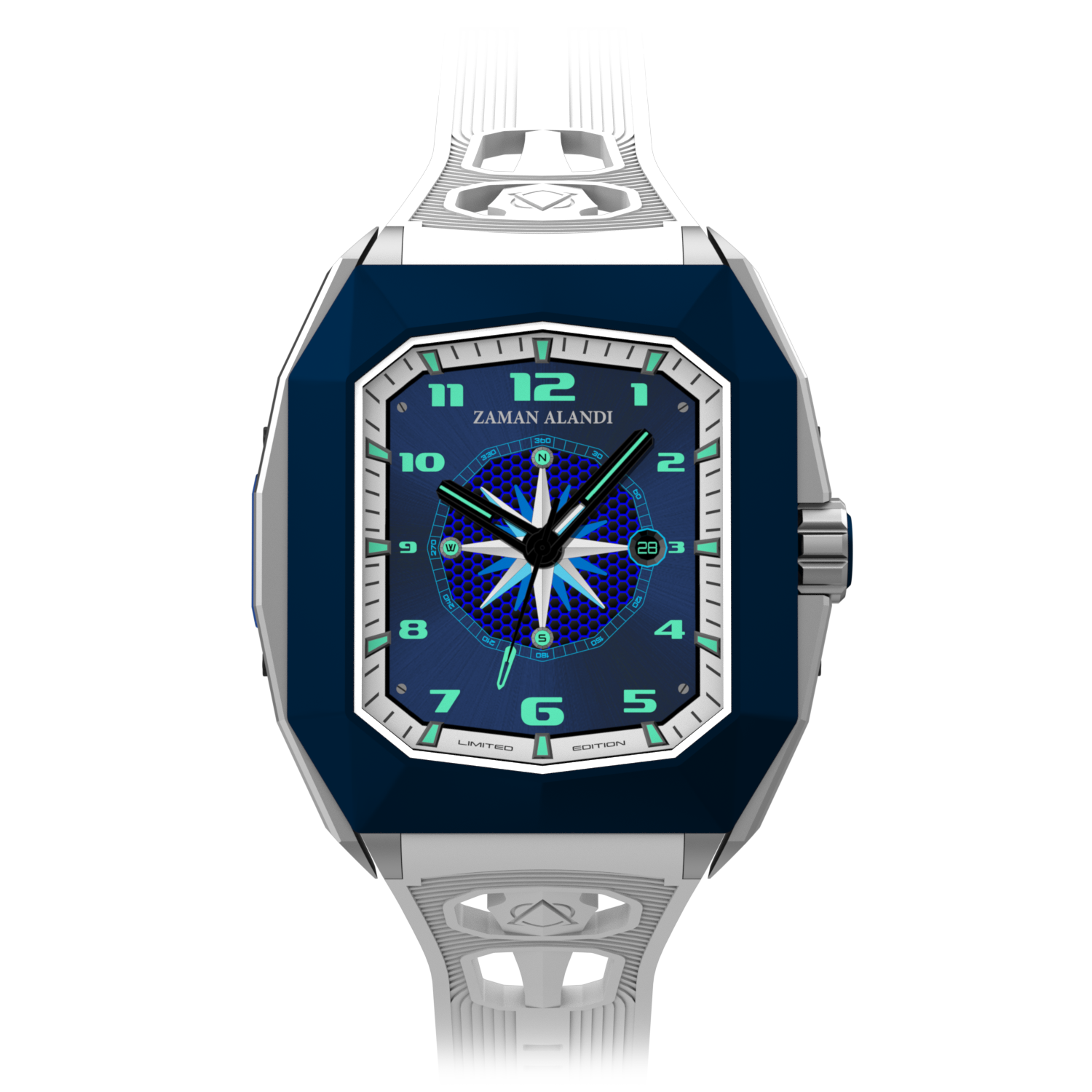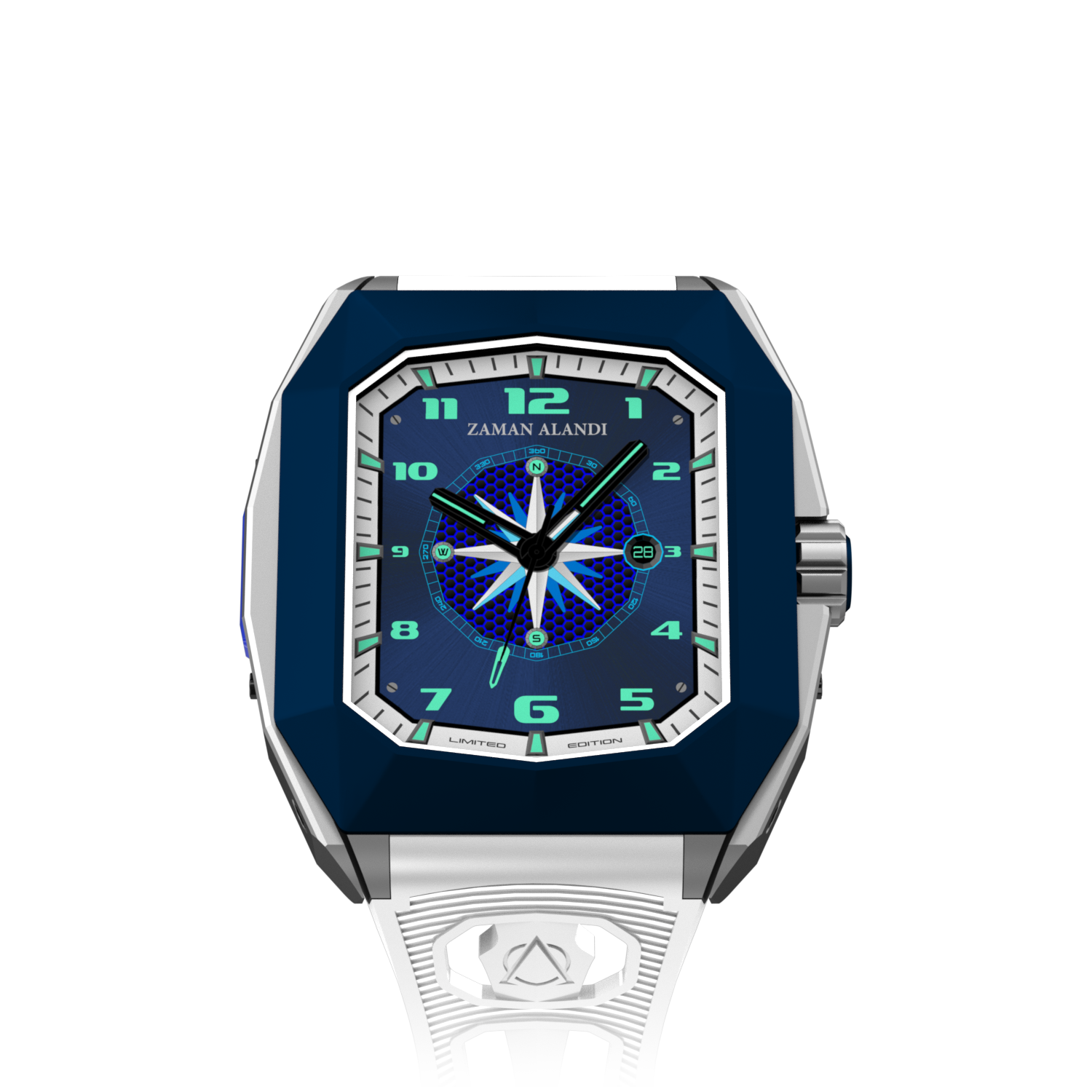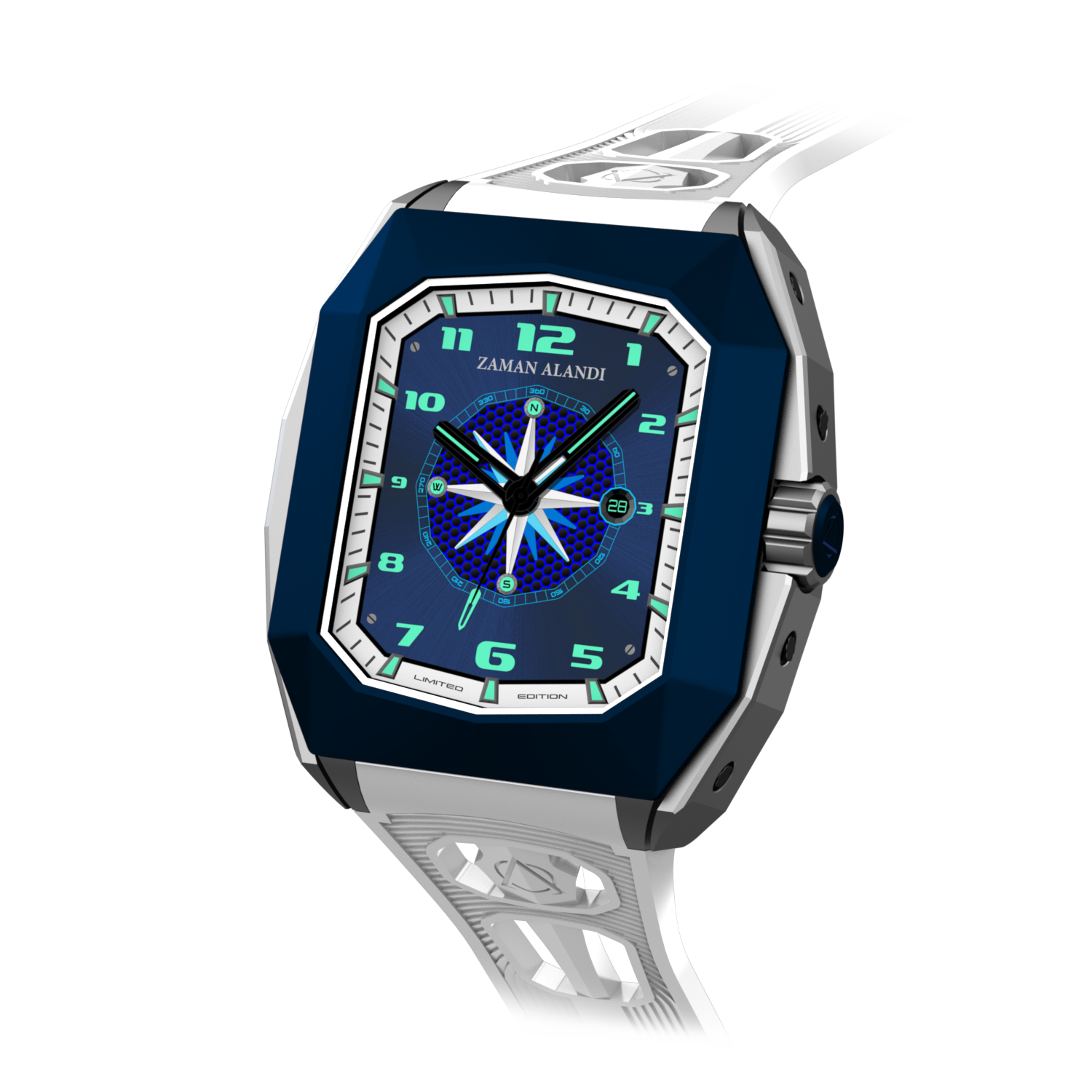 Bahr Al Turath Navy White is a tribute to the boundless depths of the sea and the limitless sky above. Its deep navy blue dial mirrors the ocean at dusk—calm, mysterious, and full of uncharted possibilities. Designed for those drawn to the water, it embodies the spirit of adventure, precision, and the quiet confidence of those who navigate by instinct. More than a timepiece, it is a companion for those who chase horizons and sail beyond the ordinary.