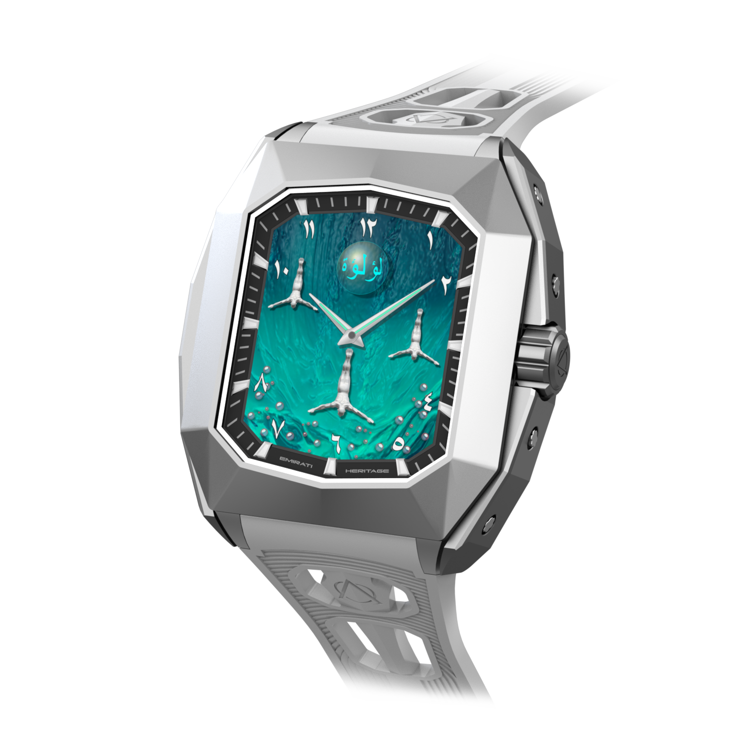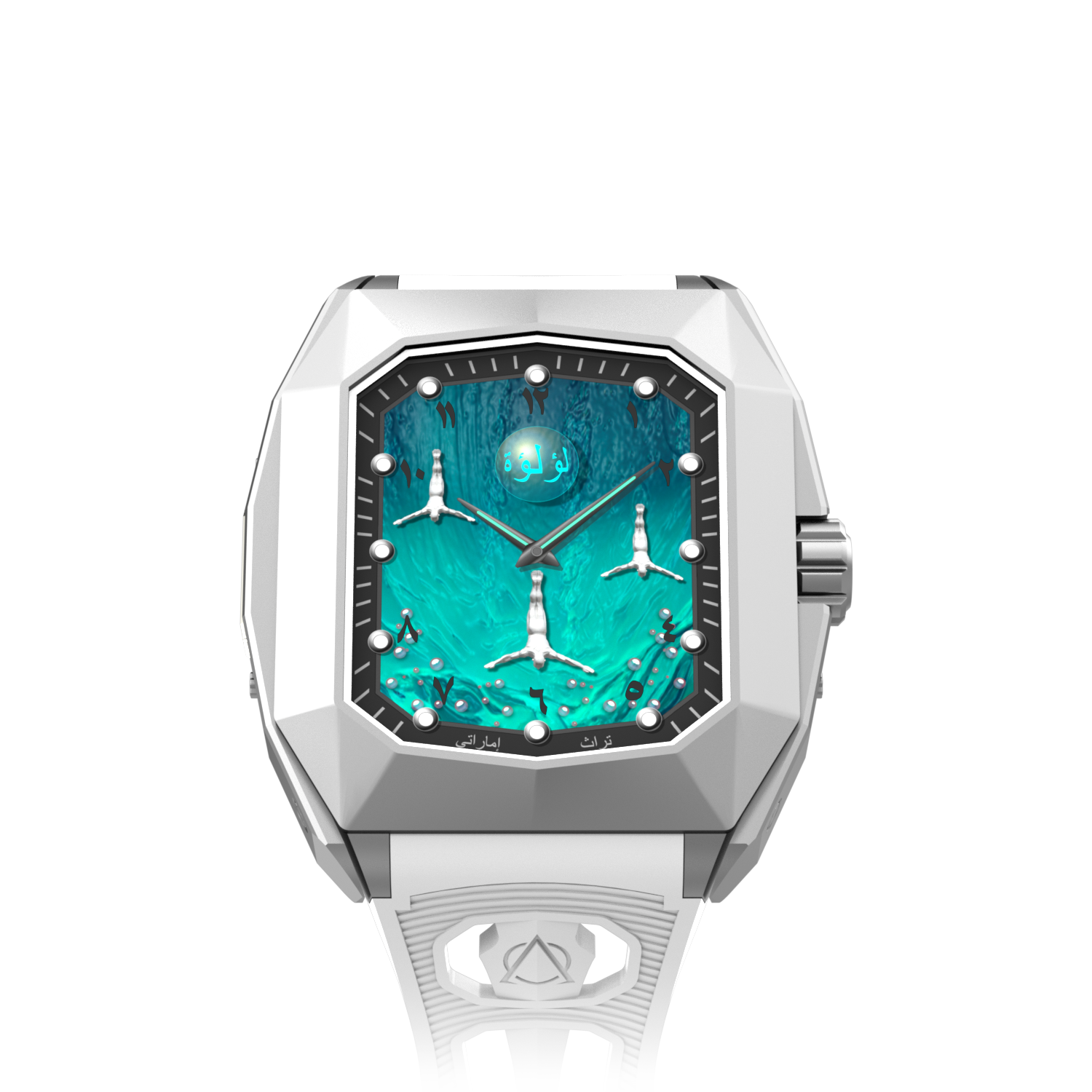 Ghawwasu Al-Lu’lu’ is a tribute to strength, growth, and prosperity—the very ideals symbolized by the green in the UAE flag. With its green hue, this timepiece represents ambition and resilience, designed for those who stand by their values while forging their own path forward.