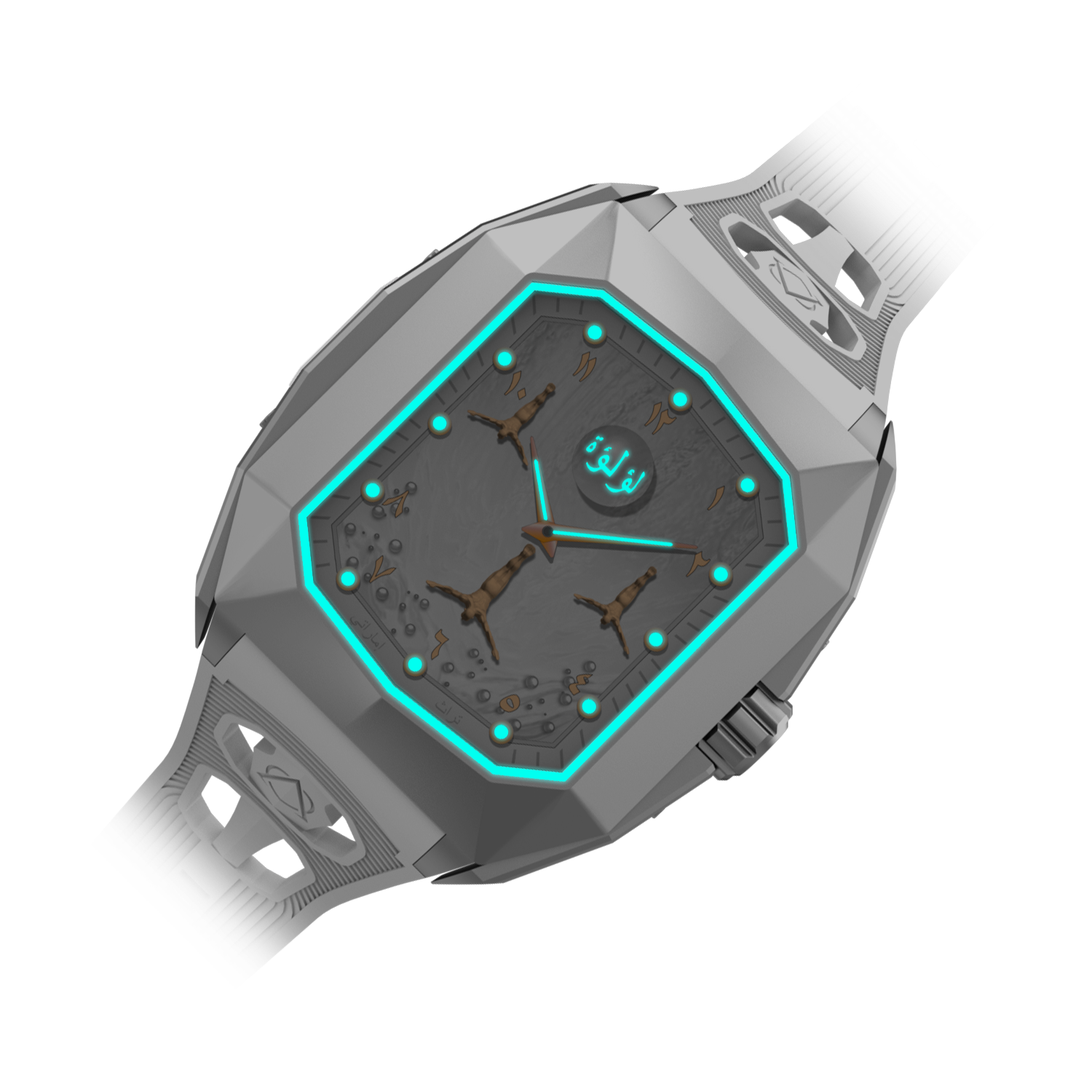Ghawwasu Al-Lu’lu’ numerals and watch hands are illuminated with Swiss Super-LumiNova that glows in low-light conditions. This helps Ghawwasu Al-Lu’lu’ watch shine in the desert night or move like lightning through urban darkness.