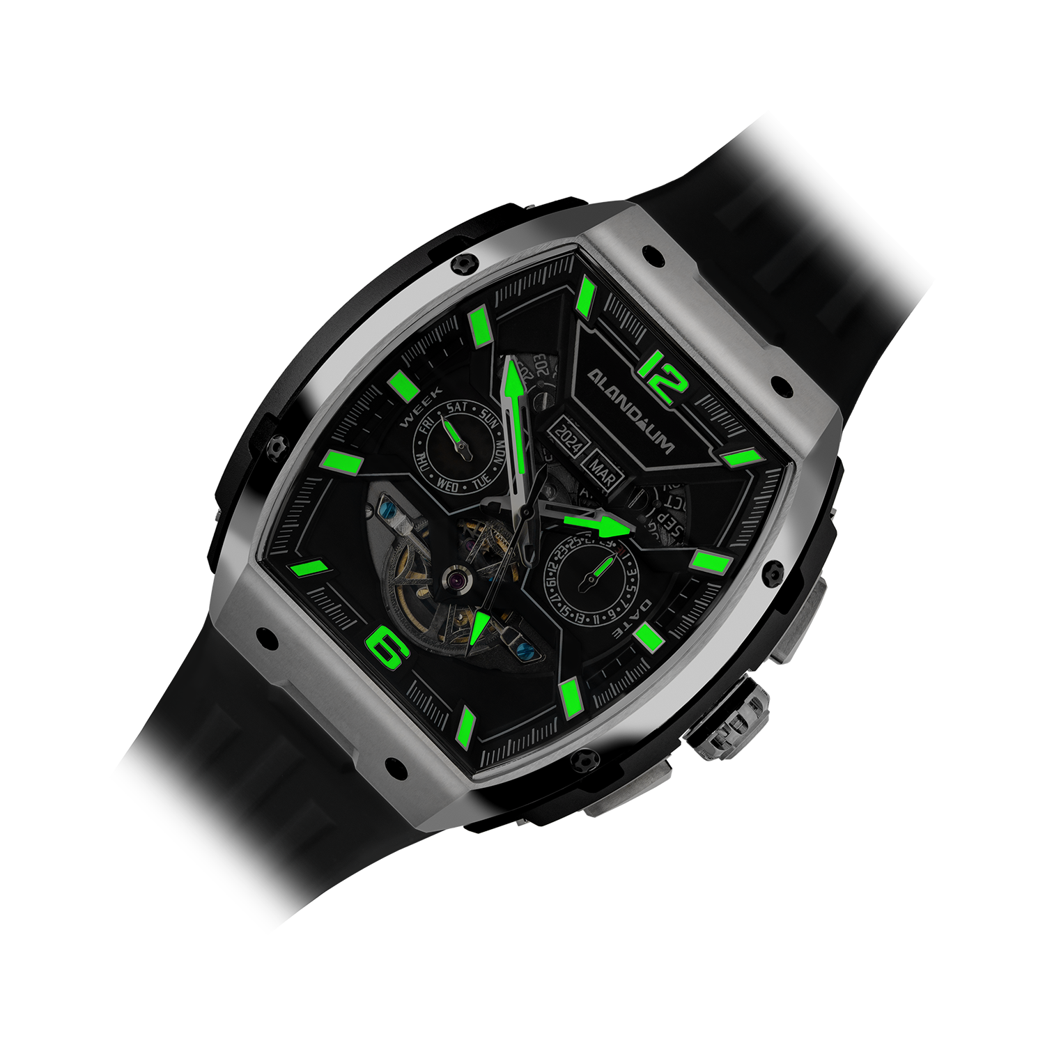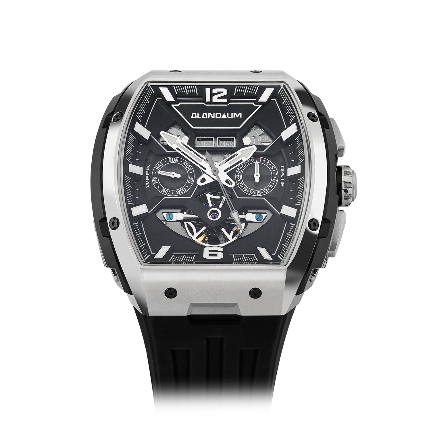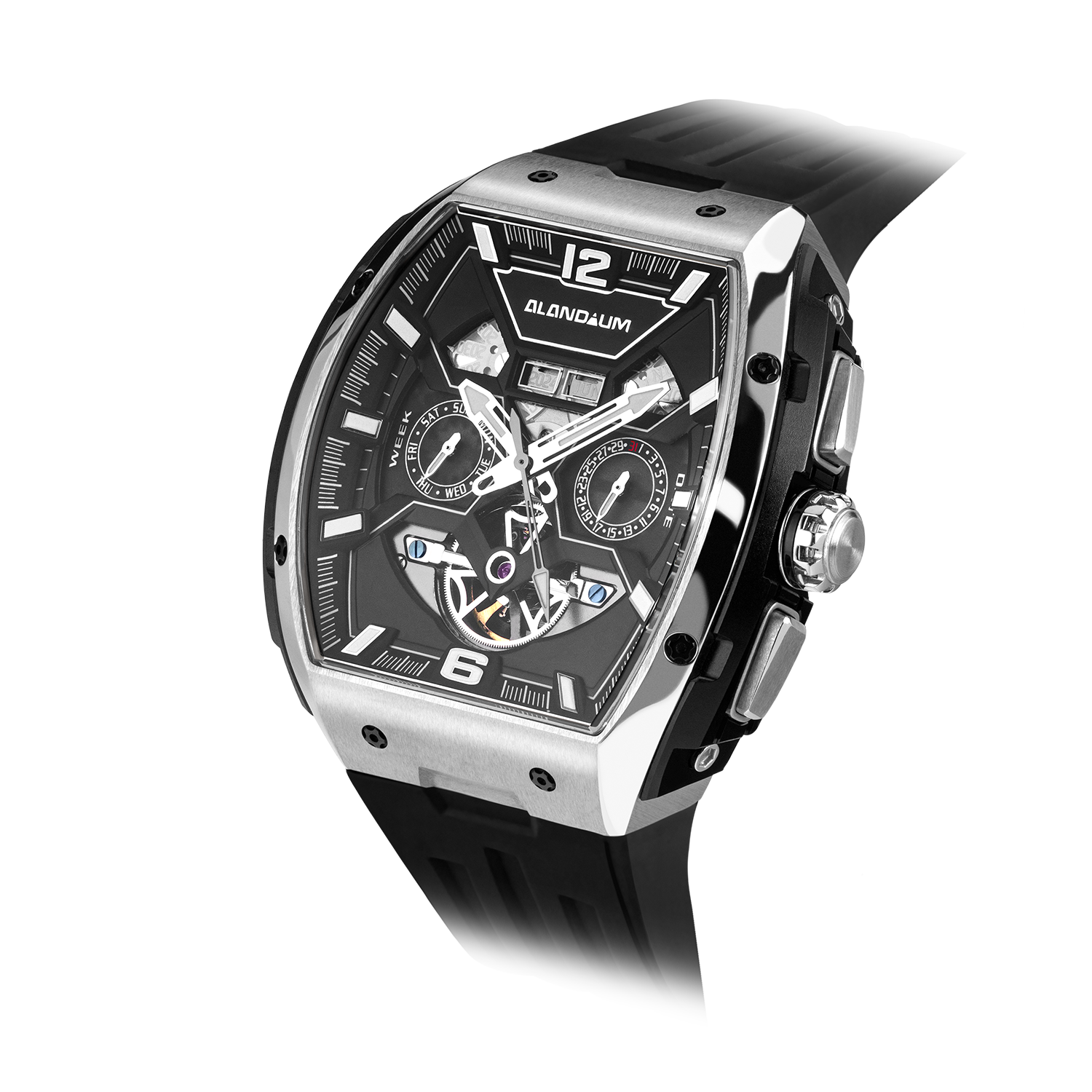 Imagine the luxury of having the year, month, date, and day displayed in a clear and intuitive layout. With a single glance at the Mercurius Dark Silver, you're in complete control of your schedule.