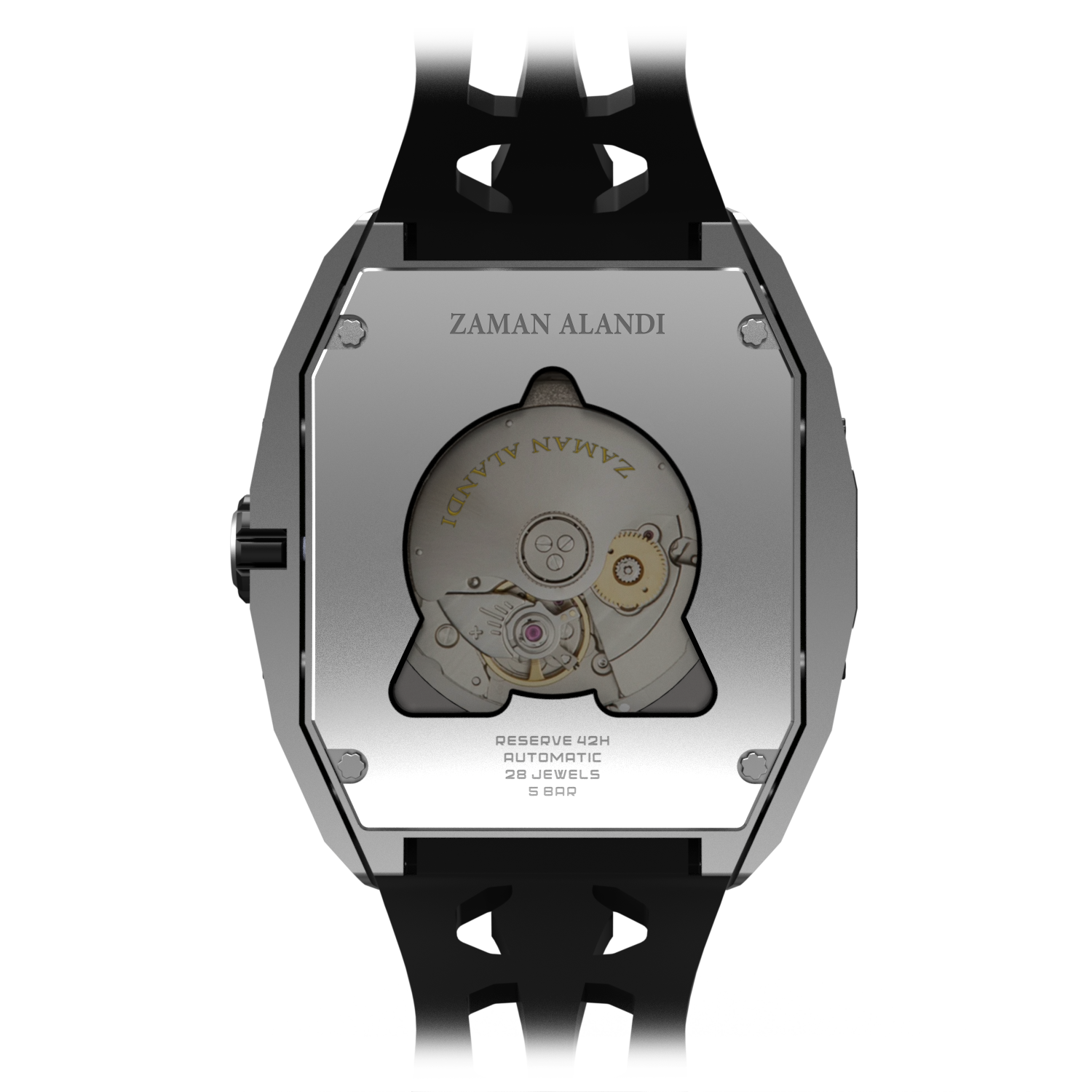 The case features a one-of-a-kind geometry, unlike any other watch in the world, making it truly unique in design and structure.