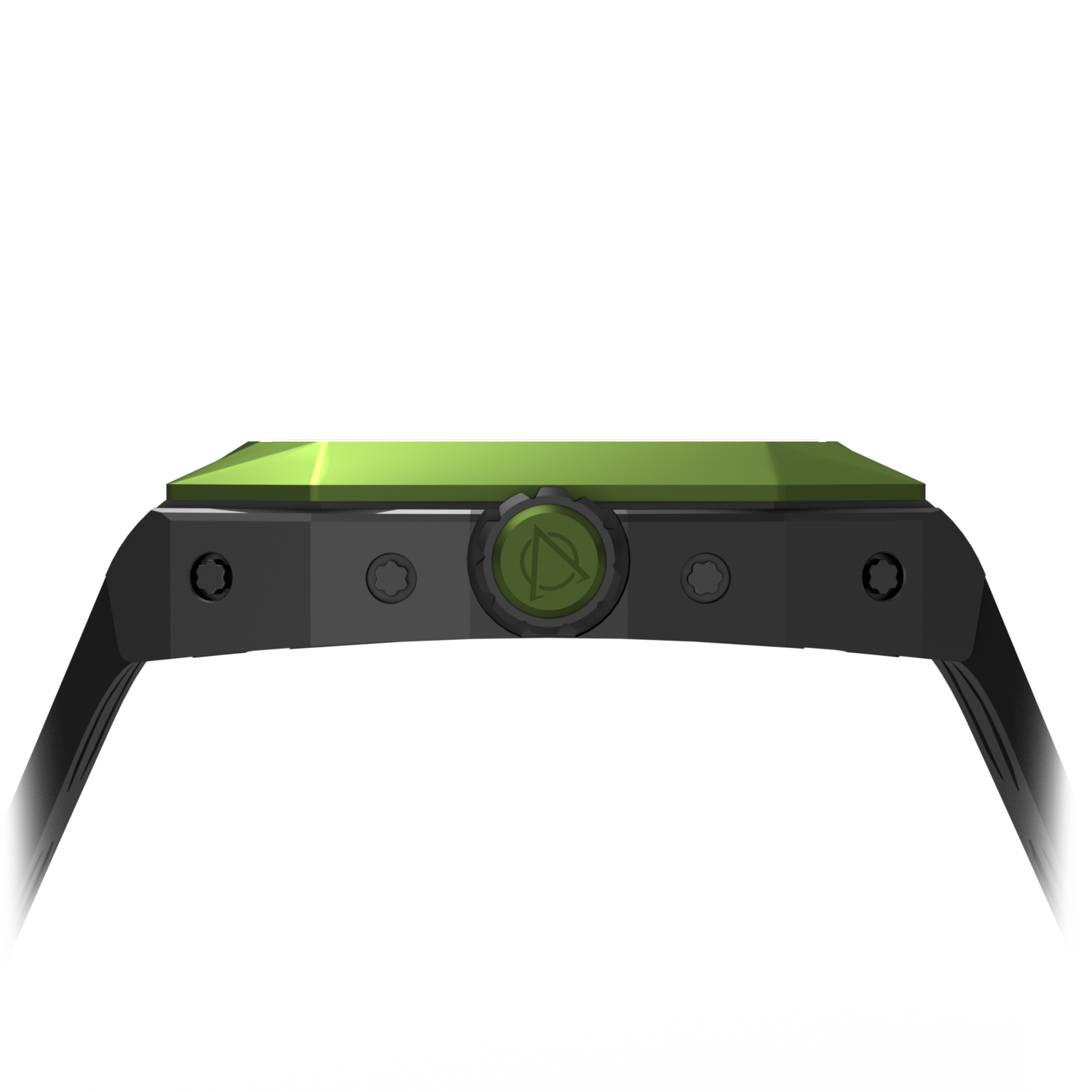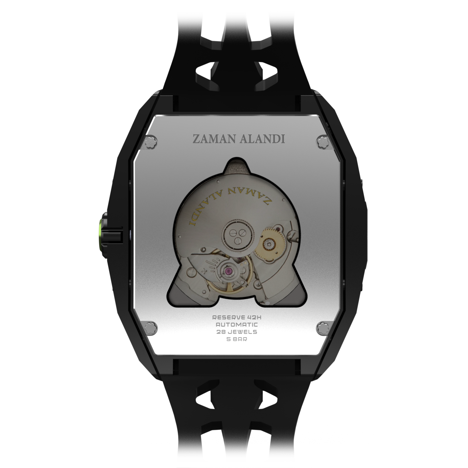 The case features a one-of-a-kind geometry, unlike any other watch in the world, making it truly unique in design and structure.