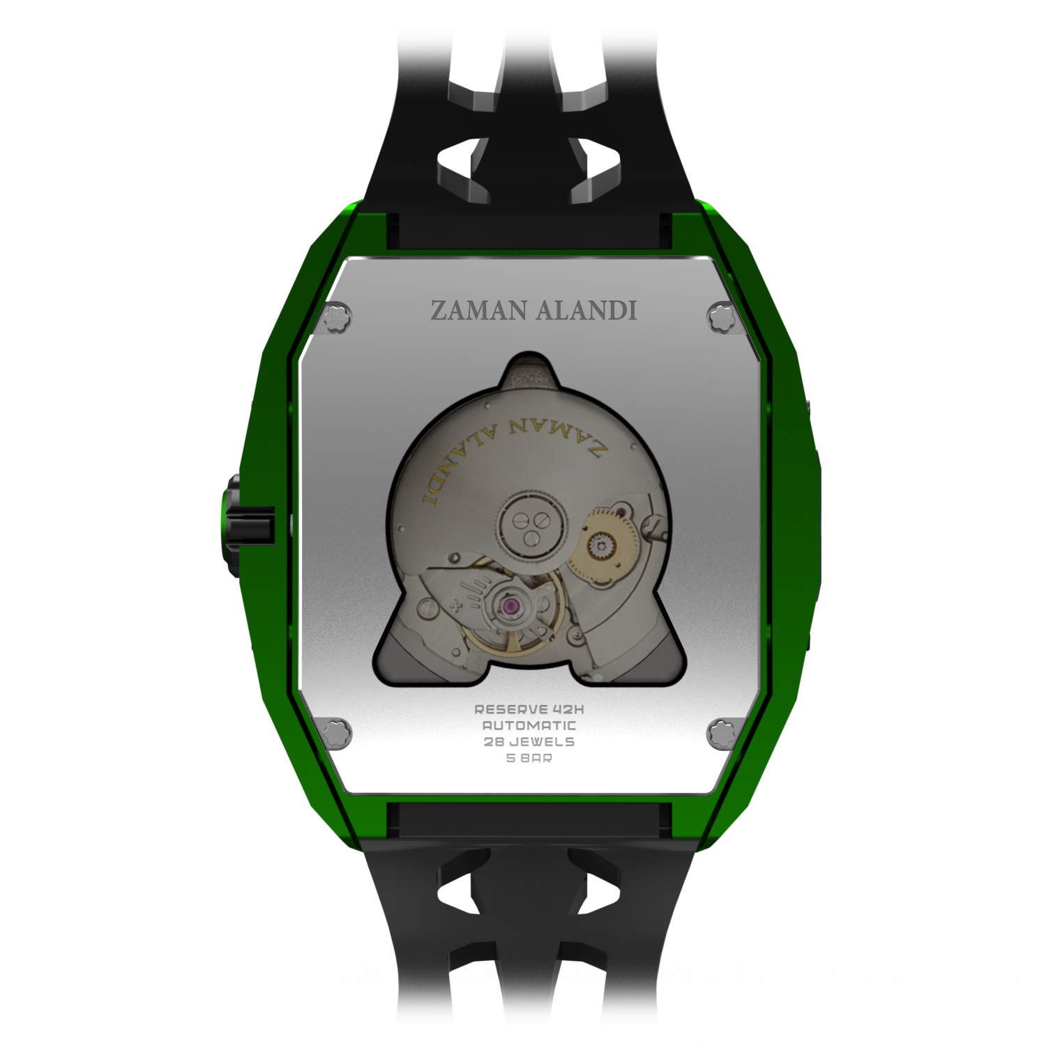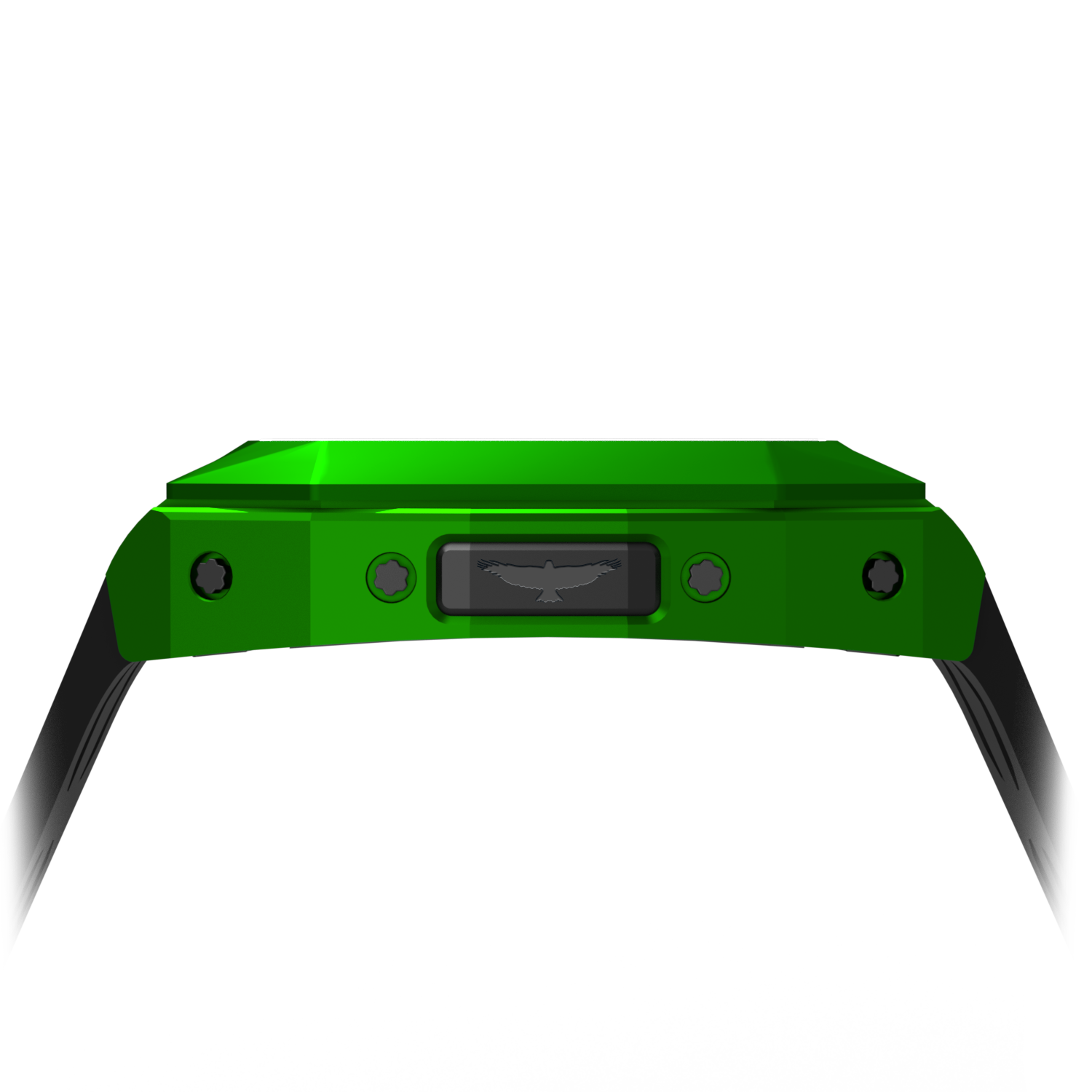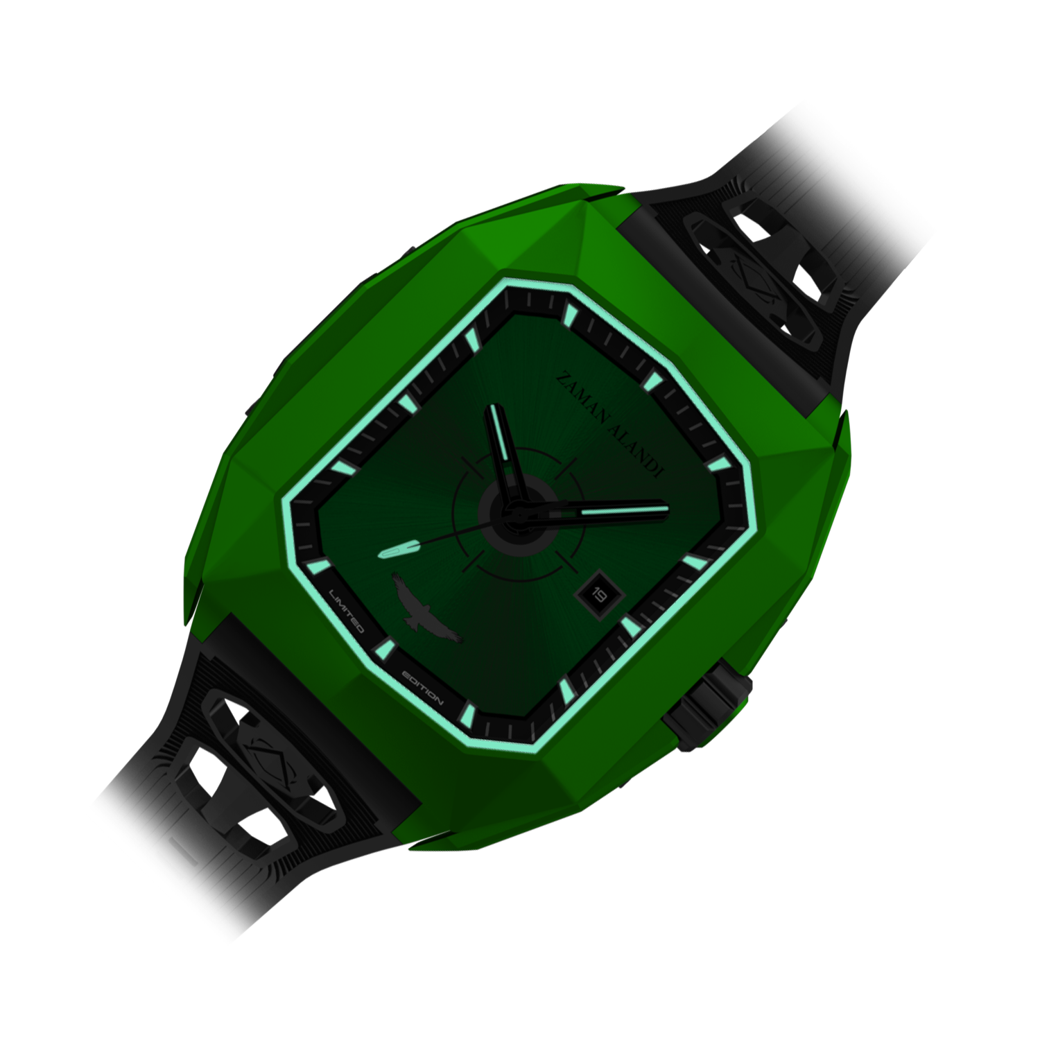 The green dial evokes the energy of untamed landscapes, where every moment counts. The falcon emblem at the bottom stands for vision and courage. A sleek date function adds a touch of practicality, making this watch a true companion for those who carve their own path with boldness and precision.