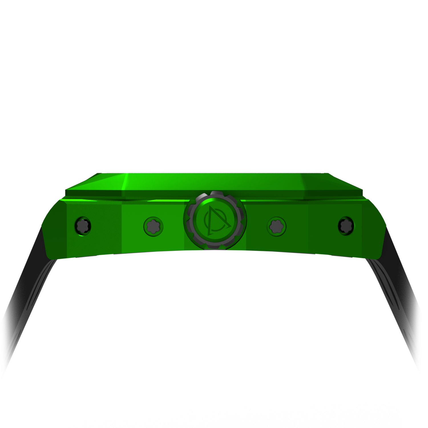 The case back has a unique designed sapphire crystal, that reveals the custom rotor, a true testament to fine watchmaking. Installed with hexagonal titanium screws, every element is meticulously designed to harmonize with your wrist. The engraved "Limited Edition" and the watch’s unique number, highlight its rarity and exclusivity. This special design invites you to admire the heart of the watch.